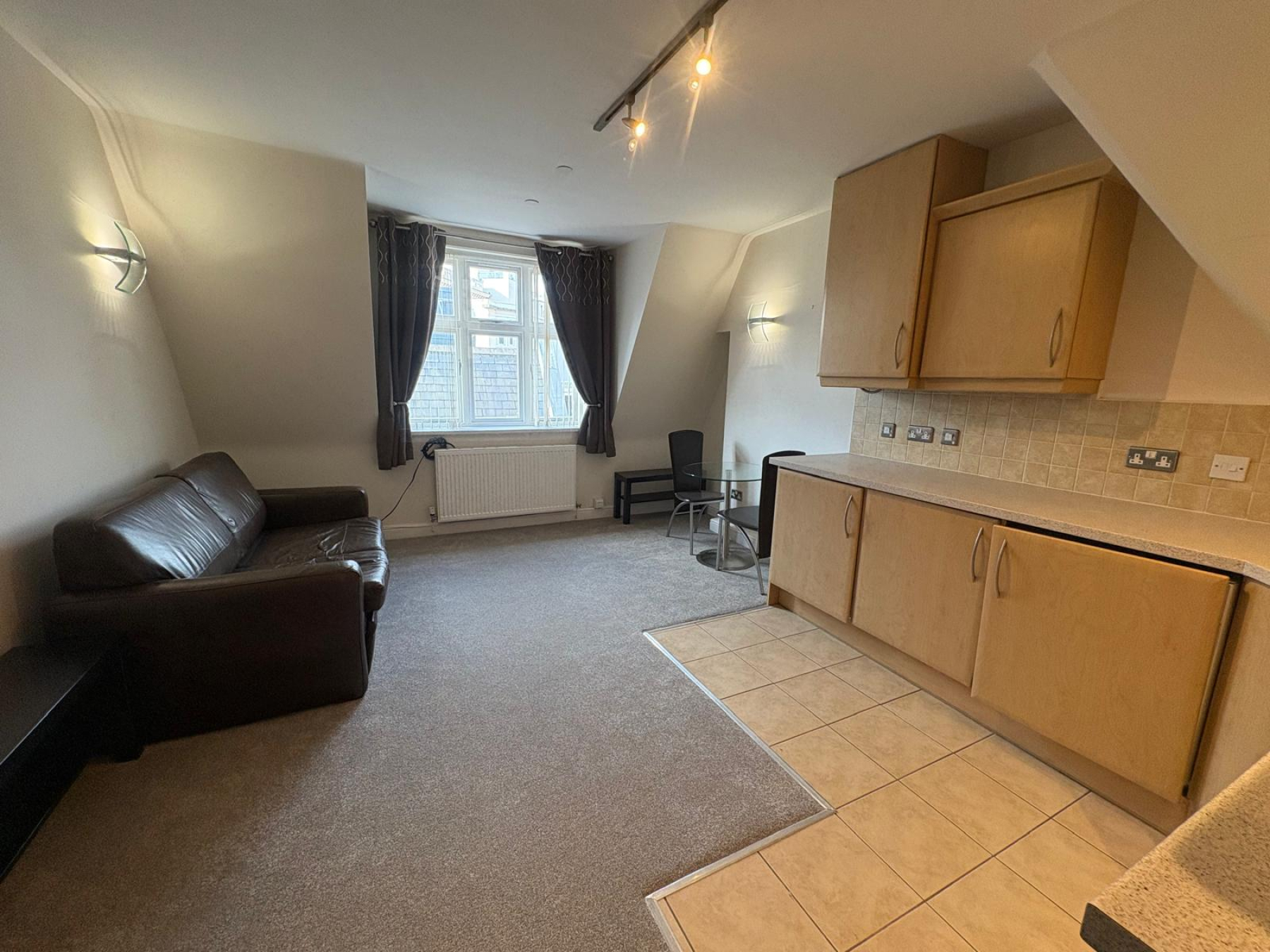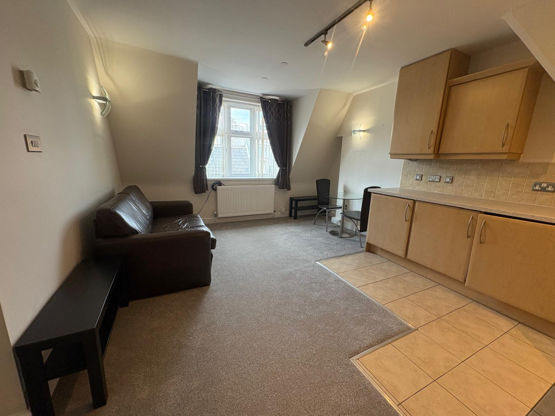 The apartment features a spacious open‑plan living area, a fitted kitchen, a good‑sized double bedroom, and a clean, contemporary bathroom. Being on the top floor, it benefits from excellent natural light and ample space.